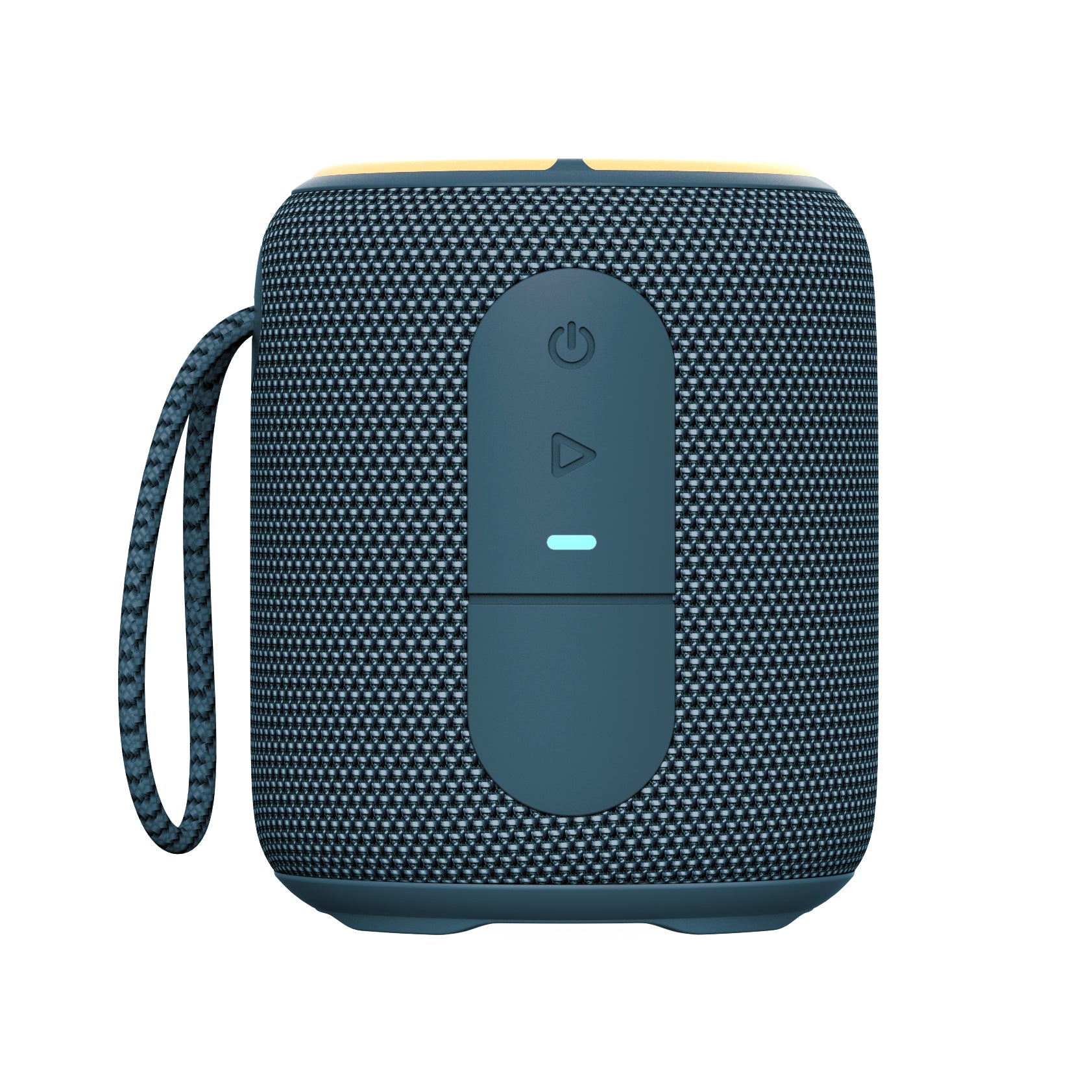 Liten, trådlös och vattentålig högtalare för strömning av musik från mobilen eller surfplattan. Tar lite plats i väskan – perfekt för poolen, campingen eller parken. Två högtalare kan sammankopplas för TWS och högtalaren har en batteritid på upp till 10 timmar vid 50 % volym.